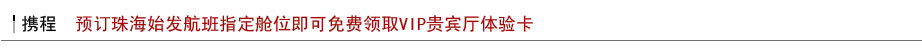 即日起至2013年7月30日通过携程旅行网在线预订珠海机场出发,东航、国航、南航、四川航空、山东航空、厦门航空、西部航空、东北航空、上海航空6折及以上经济舱,可凭携程行程确认短信至珠海机场补票柜台免费领取VIP贵宾厅体验卡。数量有限,先到先得!详见活动细则。