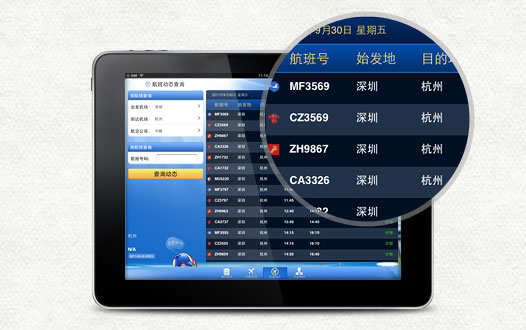 可以通过设置出发和到达机场,实时查看相应的航班起降信息。
