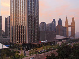 天津丽思卡尔顿酒店毗邻海河,被当年与中国通商的欧洲国家之19、20世纪建筑环绕其中。酒店位处中央商务区心脏地带,邻近众多历史及文化地标。作为天津的地标酒店,其富丽堂皇的古典主义外墙,反映出该地浓厚的历史。”